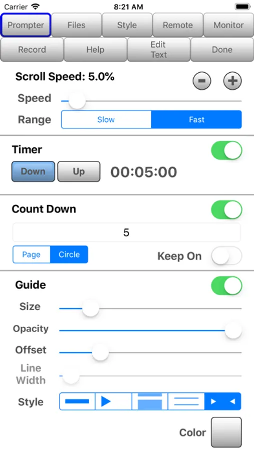 - Touch Recording: Record and playback your interactions with the prompter.