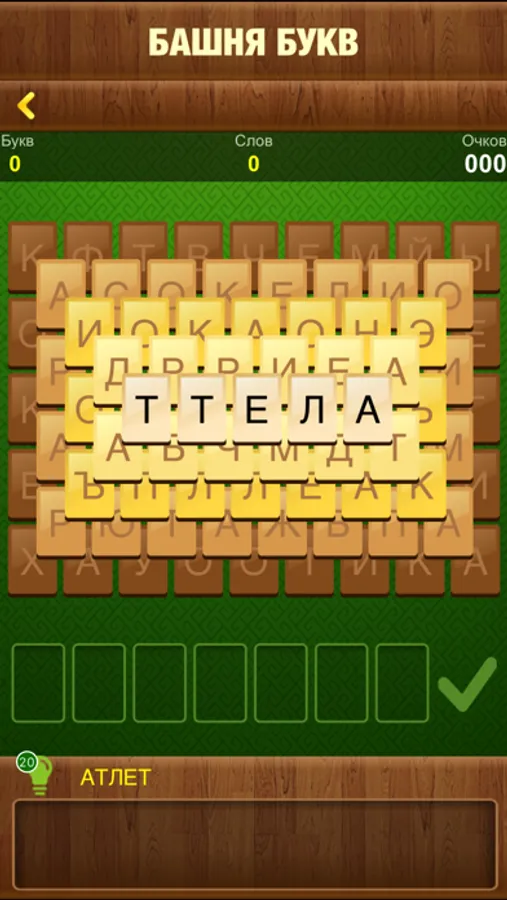 В онлайн игре один и тот же набор дается обоим игрокам. За определенный промежуток времени нужно составлять как можно больше слов.