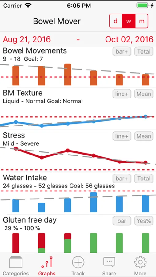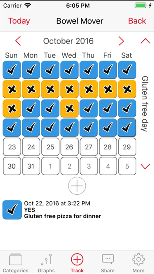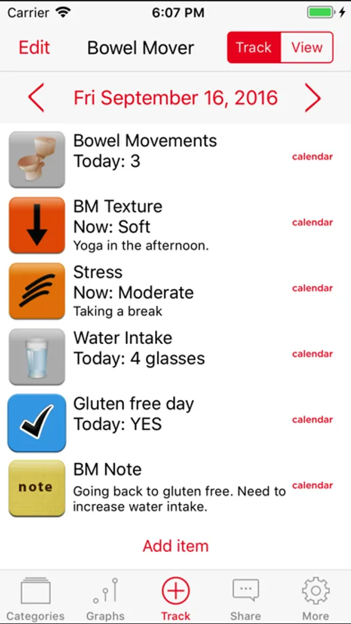 You can relabel those within limitations to make them fit your needs: Bowel Movements - Water Intake - Stress - Gluten Free Day - BM Note - BM Texture