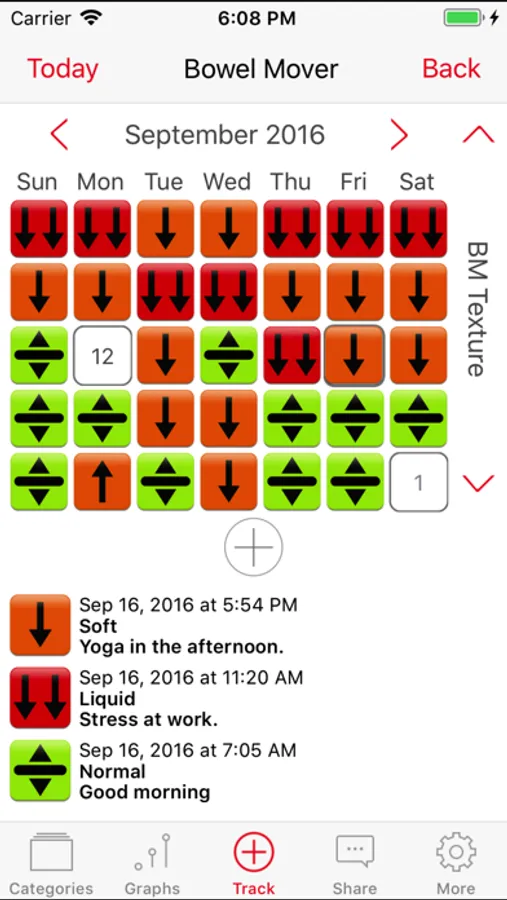 The app now features the Bristol Stool Scale for new users. We set up a separate category for that. Select your favorite setup by switching categories.
