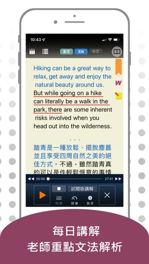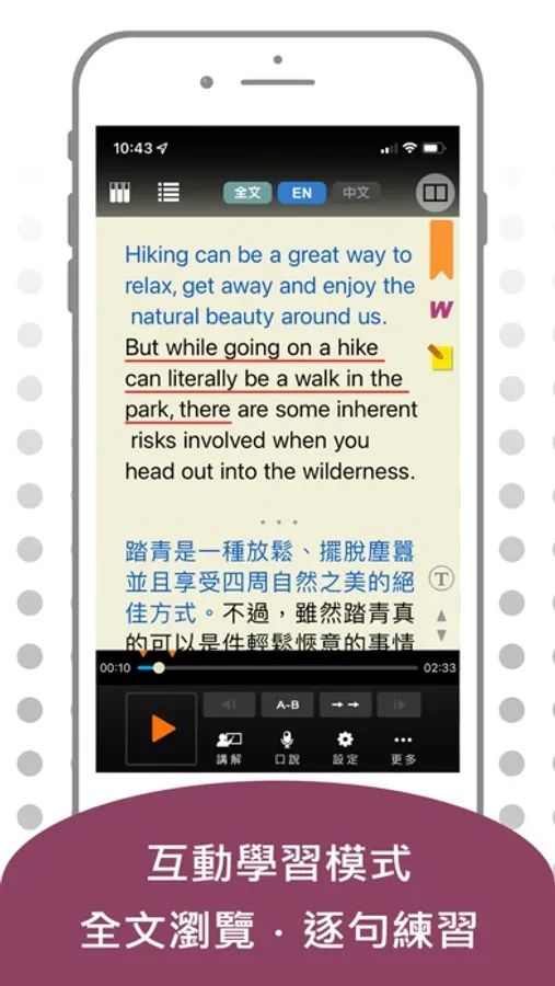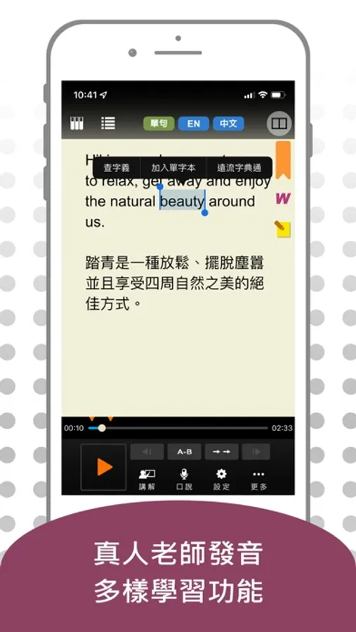 10. 可查看中文翻譯,並提供英/中同步閱讀,以訓練聽、讀、譯能力。