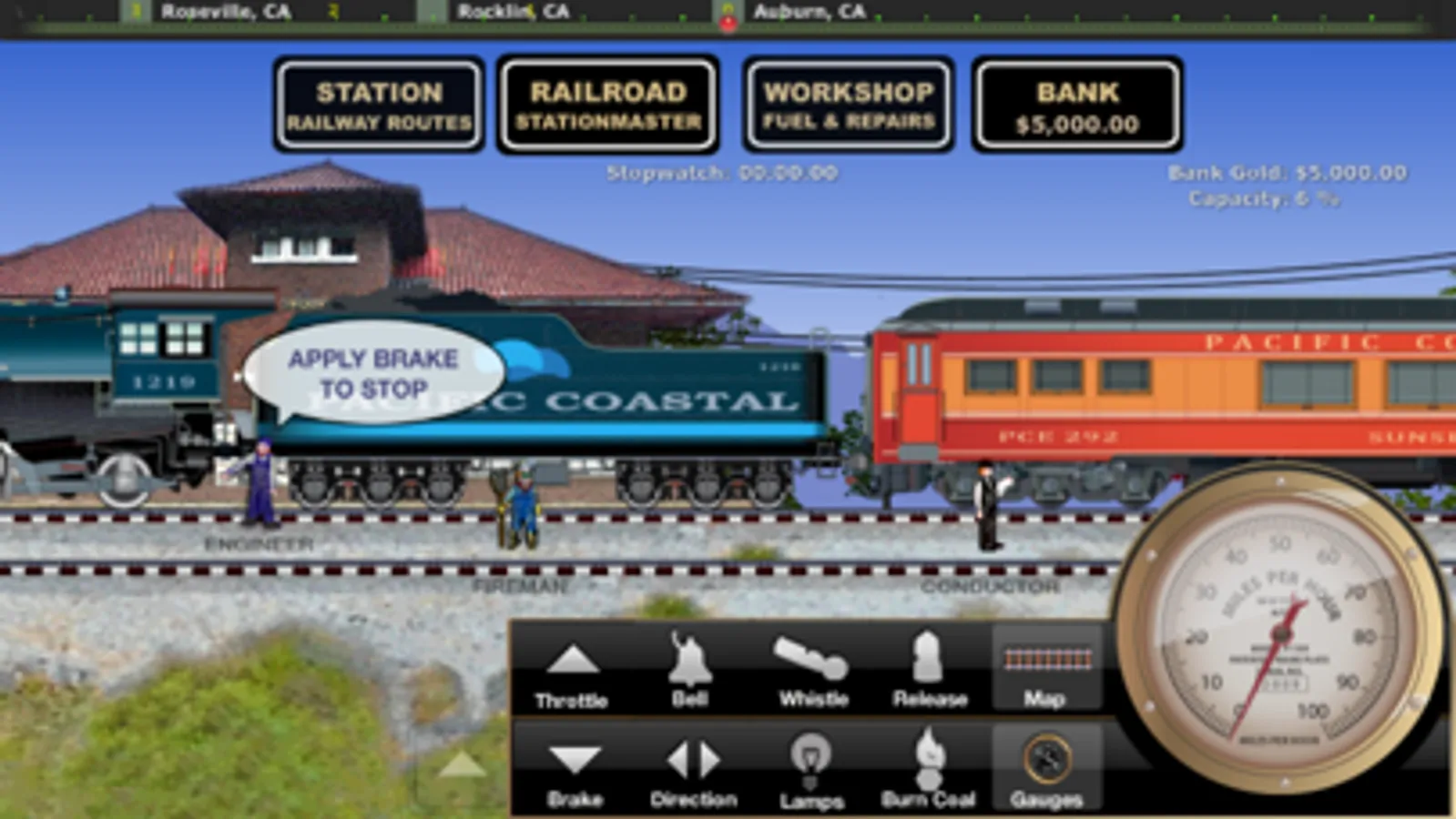 New fully staffed railroad crew. Engineer, fireman, switchman, conductor and station master will help you learn basic steam engine operation and how to build a booming railroad business.