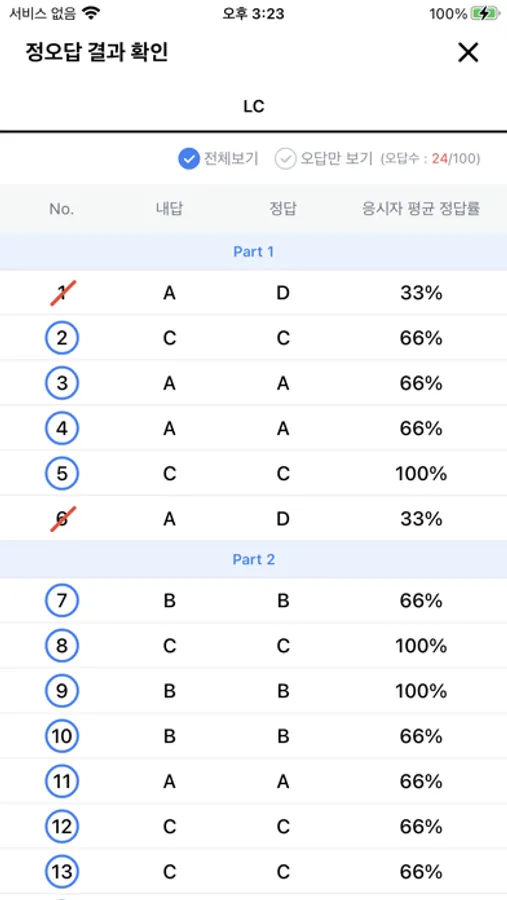 3. 교재 모의고사 채점 및 실력 진단 (채점 결과 누적 관리)