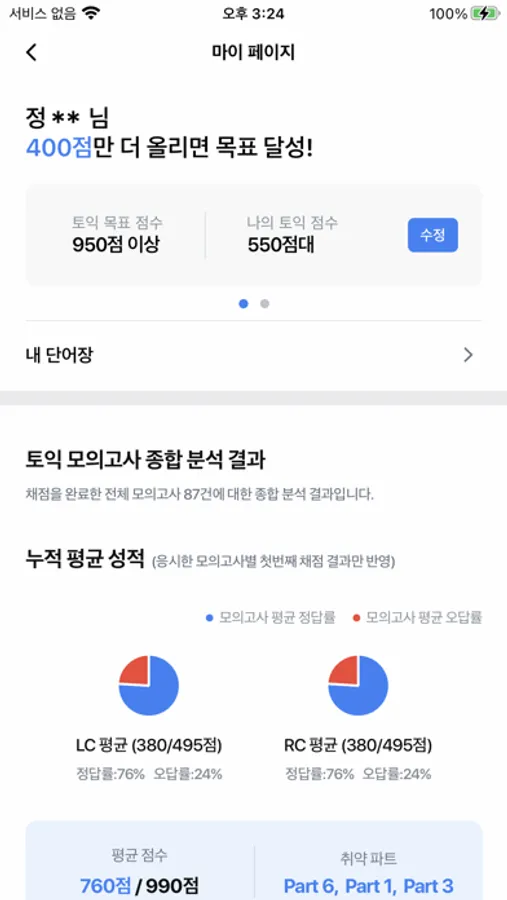 출제기관이 만든 문제로 내 예상점수와 취약점까지 분석해주는