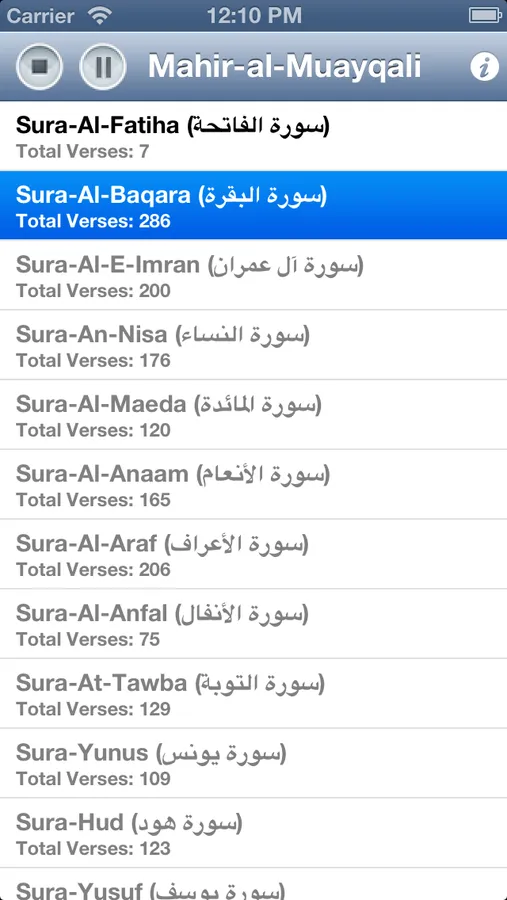 Complete Quran recitation audio of Sheikh Mahir Al Muaiqely. No further download needed after purchasing the full upgrade. Also supports background audio and remote events.