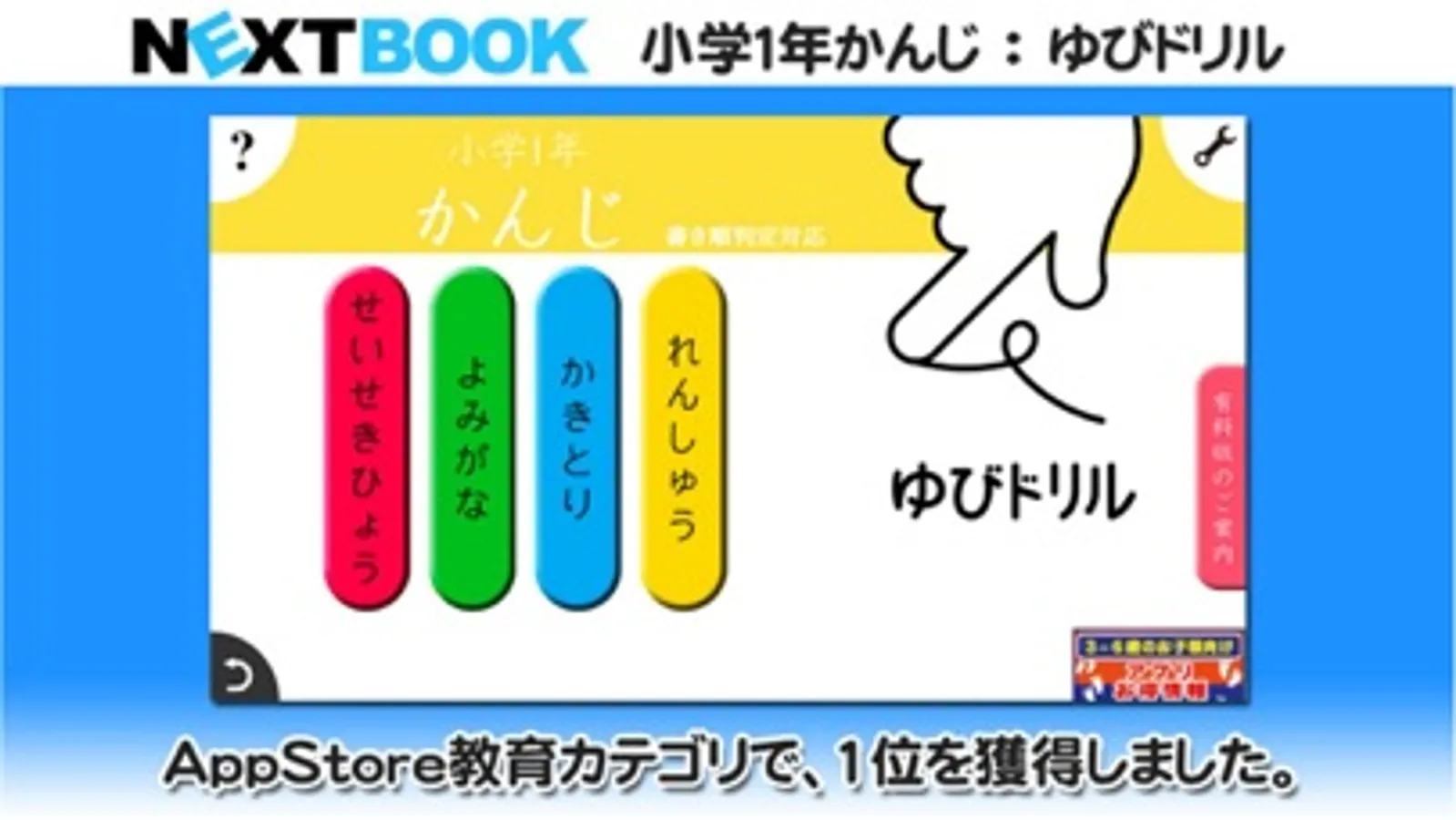 *「小学1年生かんじ:ゆびドリル」は、App Storeトップ教育有料iPad Appランキングで1位を獲得しました。