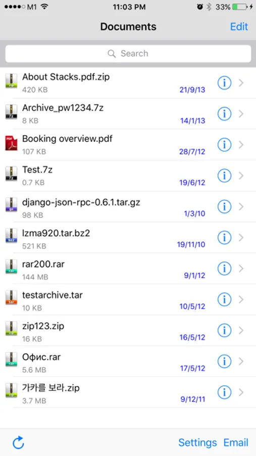 This simple application allows view content of ZIP, RAR, gz, tar, tar.gz, jar, bz2, Z, 7z files (including password protected files). You also can preview content of files and email individual files from archive.