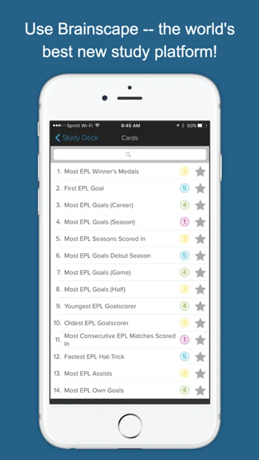 Brainscape is here to help you memorize the essential players, events, and records from America’s four major professional sports leagues, plus England's premier soccer league. Applying the latest in cognitive science techniques, Brainscape’s Sports Trivia * will allow you to QUICKLY and EFFICIENTLY learn hundreds of dynamic flashcards about league champions, MVPs, and player nicknames. It’s the perfect app for both true sports geeks and those who simply want to brush up on their knowledge of trivia!