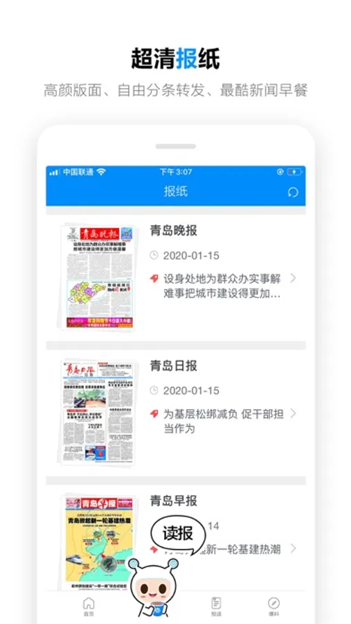 【报纸】业内领先手机高清读报平台,与PC同步。1:1还原报纸版面,1000余期《青岛日报》、《青岛晚报》、《青岛早报》、《青岛老年报》,在线浏览、评论、转发、收藏。