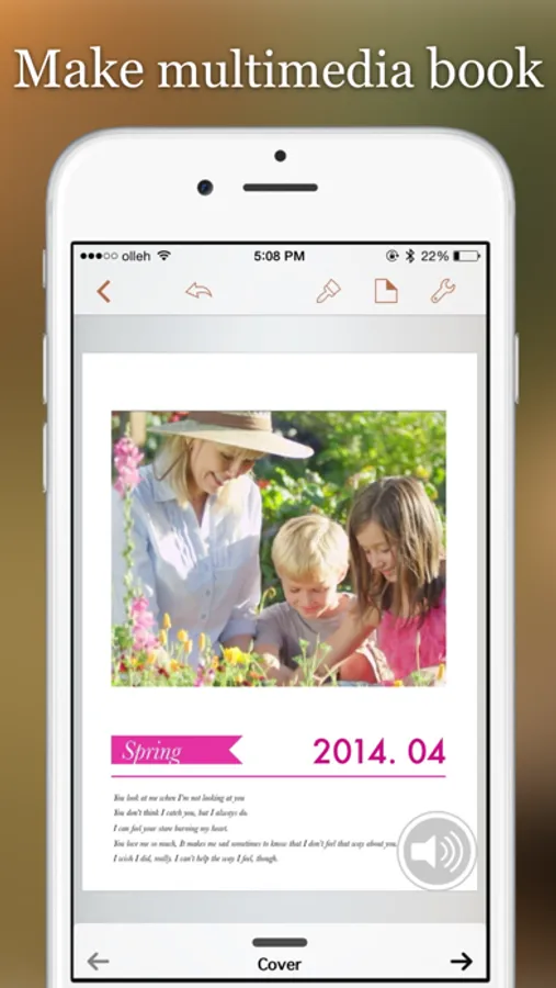 Use recorder to record your voice and add to the book, or add music from Music Library to your book.