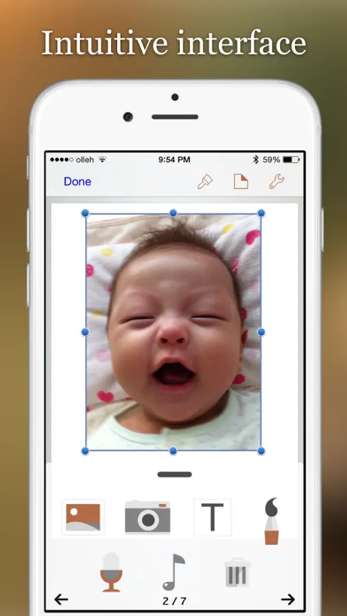 You can add pictures, text, voice recordings, songs, and videos on the page.