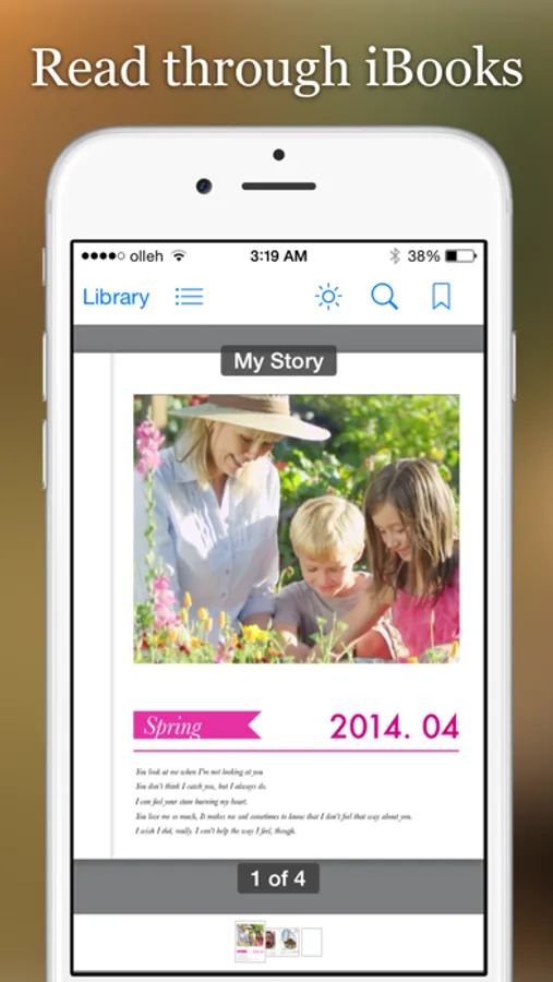 The standard E-book format, epub, is supported to read the made books with iBooks and you can register your books on iBookstore.