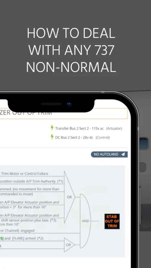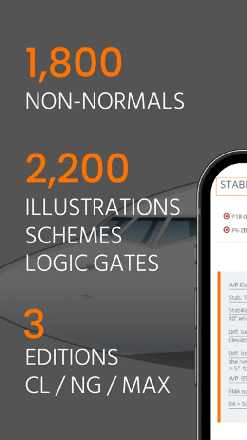 The B737MRG covers 300 different non-normals, that is a hundred more than the official QRH. The app provides system notes and practical advice on how to deal with each non-normal, both on ground and in flight. The app comes with over 2,200 illustrations, logic gates, lights and schematics!