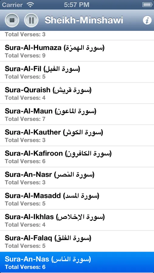 {NOTE: In free version only first two suras are enabled}
