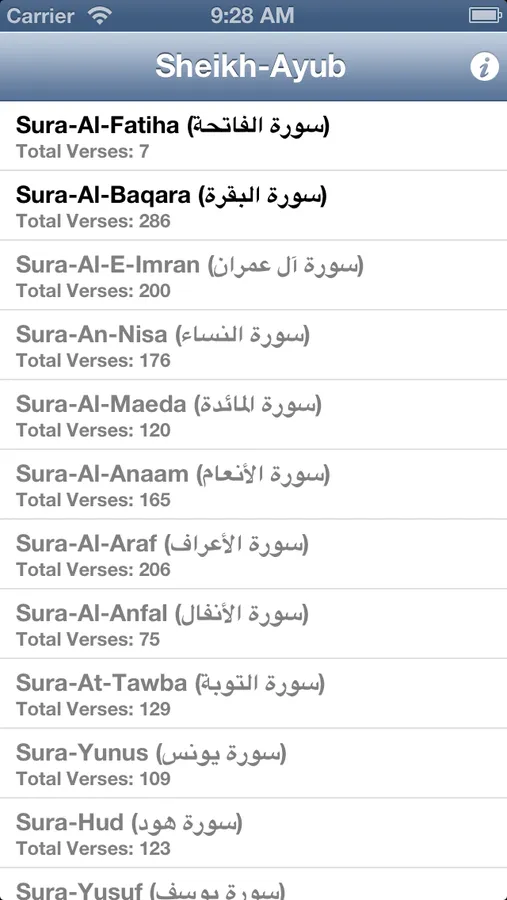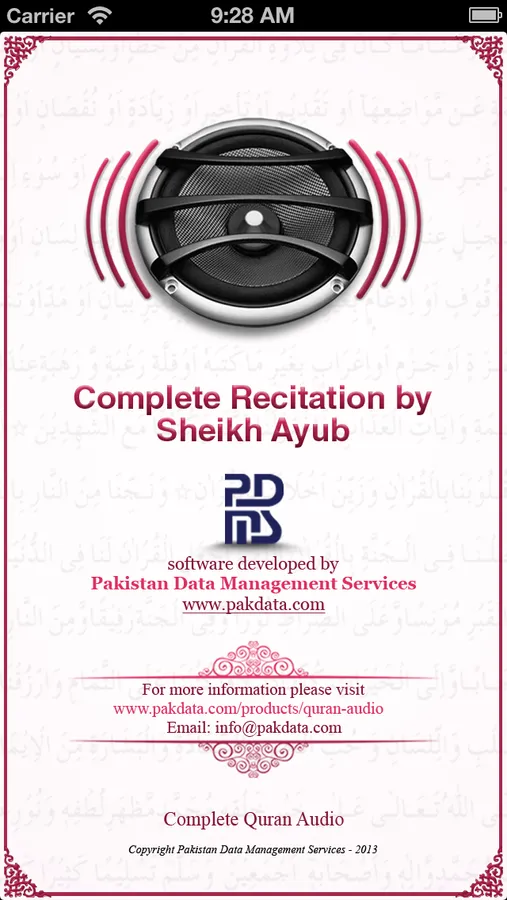 Complete Quran recitation audio of Sheikh Ayub. No further download needed after purchasing the full upgrade. Also supports background audio and remote events.