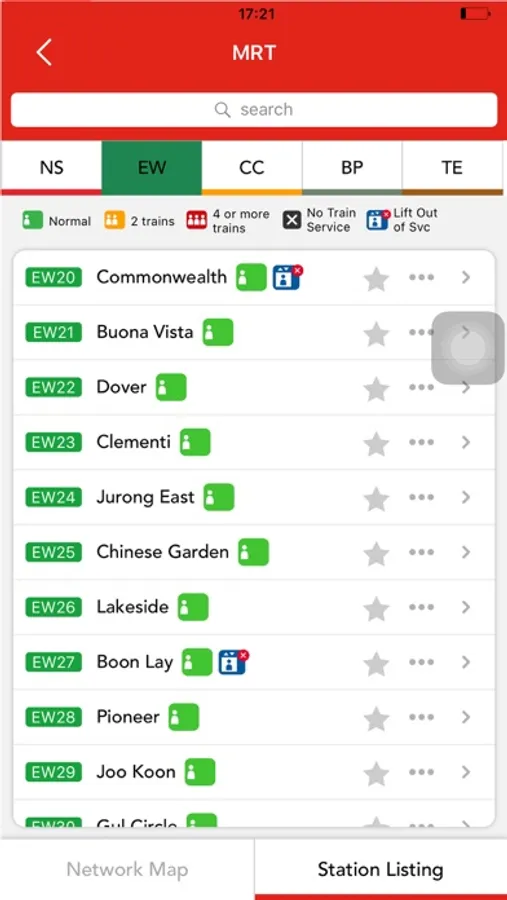 - Train frequency indicator for North-South, East-West Lines and Circle Line MRT stations for better travel planning