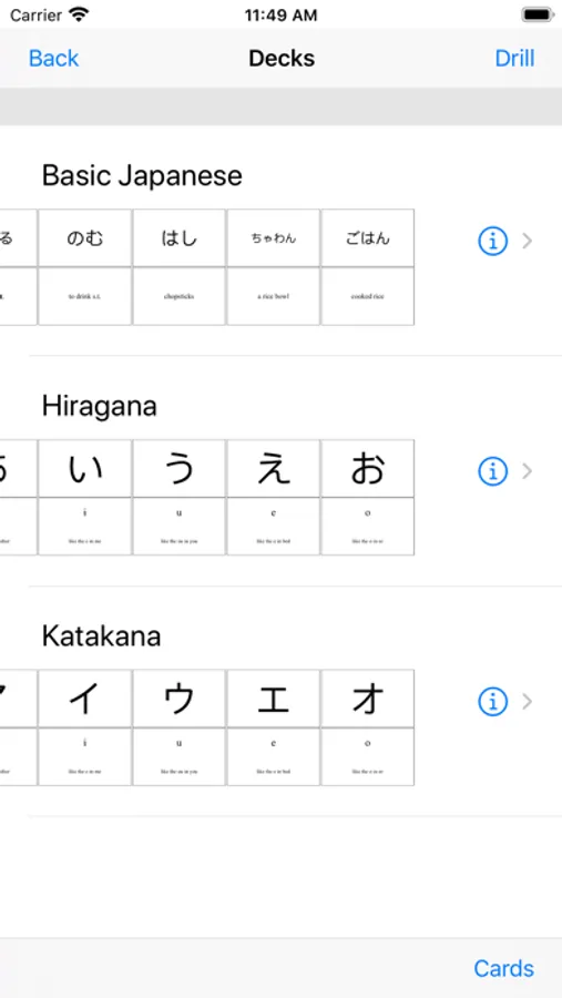 •includes cards for learning Hiragana and Katakana