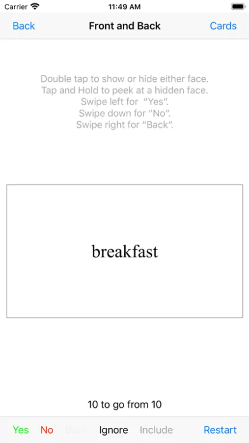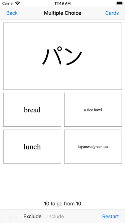 •learn cards 10 at a time