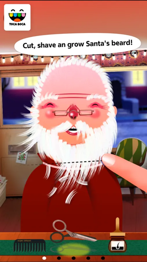 Cut, color and style Santa Claus beard and hair! In this Christmas edition of the smash hit Toca Hair Salon, you can choose between styling Santa Claus or a funny Christmas tree! And best of all? It's completely FREE!