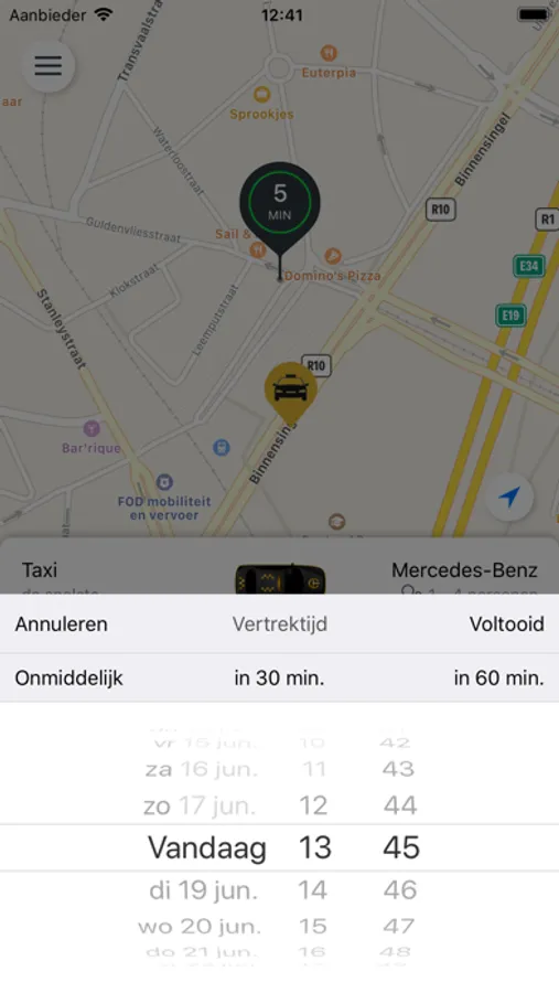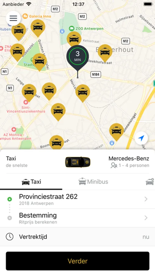 Get the downloadable Antwerp-Tax App and order a cab for immediate pick-up.