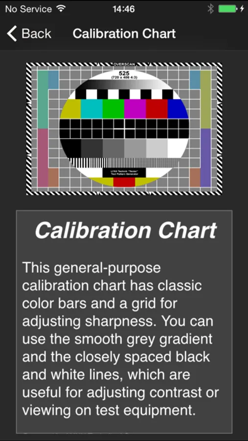 Run TV TuneUp 3D in Executive mode, and take a series of simple steps with clear instructions to perfect the picture on your projector or display. In 3D mode, the app provides advanced tools for measuring the ghosting or crosstalk for different combinations of displays and 3D glasses, for example. Use engineer mode to view a selection of standard test images matched to the resolution of your display. From NTSC from your iPhone's Analog Video Adapter, to full HD 1080p on your iPad's HDMI connector, TVTuneUp3D delivers pixel-perfect synthesized test patterns and industry-standard charts provided by top test-equipment manufacturer LYNX Technik AG.