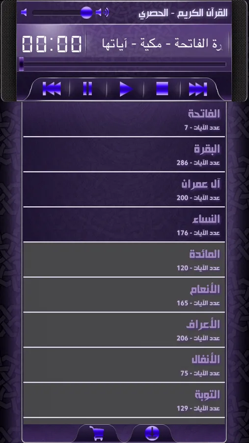ملحوظة: يمكنك الإستماع إلى الخمس أجزاء الأولى من القرآن الكريم بالمجان لتجربة التطبيق وفي حال أعجبك التطبيق يمكنك فتح كامل التطبيق من خاصية الشراء داخل التطبيق