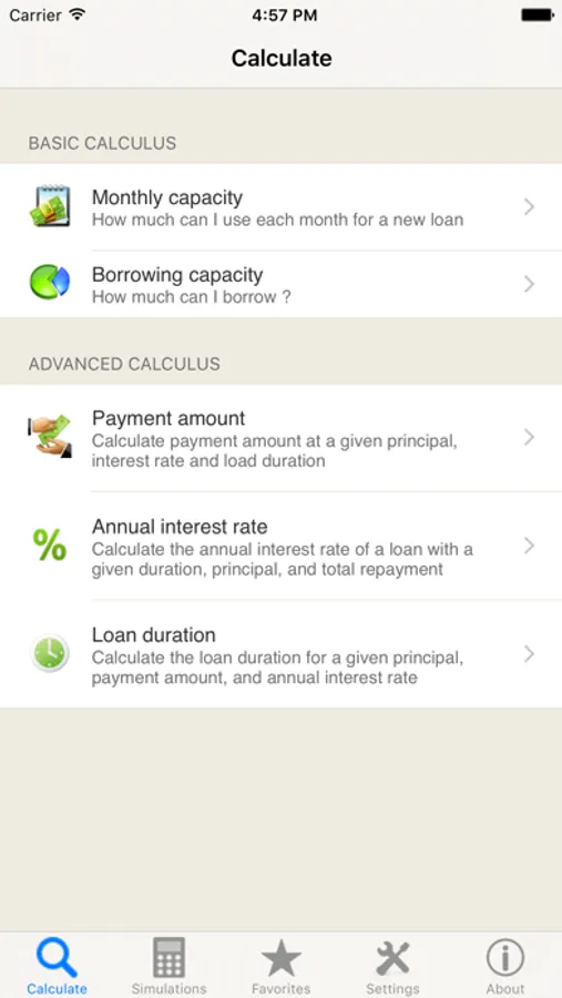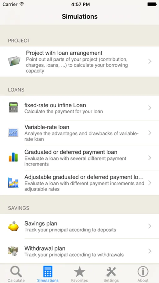 iLoan allows you to calculate and compare loans thanks to monthly payments, APR and loan total cost. All simulations are convenient to real estate borrow, vehicle loan and consummer credit.