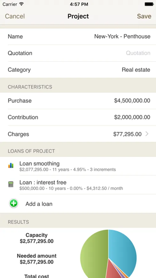 - Complex project with multiple loans : you can also make a loan-smoothing (searching monthly payment, principal or duration)