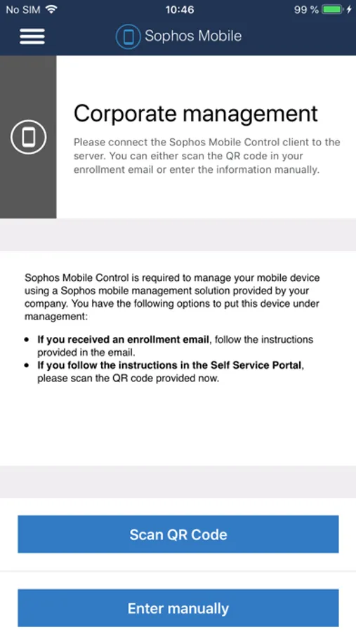 Sophos Mobile is a Unified Endpoint Management (UEM) solution which allows companies to easily manage, control and secure iOS and other mobile devices. Sophos Mobile Control allows you to enroll your device with Sophos Mobile. Your organization can then configure device policies, distribute apps and further secure your device.