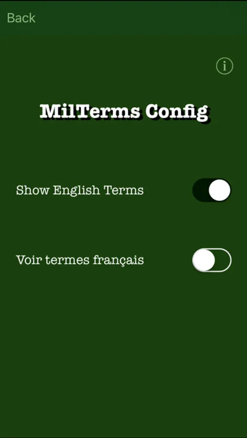Most terms are available in both in English and French.