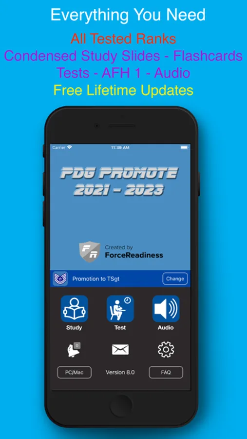 1. PURCHASE ONCE, USE FOR A CAREER! PDG PROmote provides lifetime free updates. Why should you have to pay for a new app every time the study guides are updated? You don’t pay $0.99 for these apps. You deserve lifetime updates. We know that your promotion is important to you but that doesn’t give us the right to take advantage of it. Should the Air Force resume testing for the SNCO ranks in the future, rest assured that we will include those ranks in the app too.