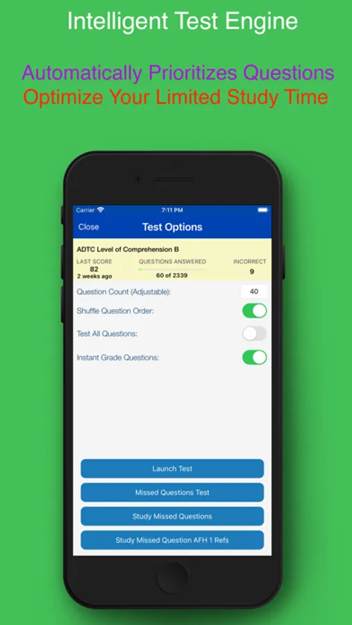6. OUR SMART TESTS WILL SET YOU UP FOR SUCCESS. PDG PROmote knows which questions you have seen, answered correctly, gotten wrong, how many times you answered correctly, how many times you answered incorrectly, even how many consecutive times you answered a question correctly. It uses this information to always put the right questions in front of you on tests.