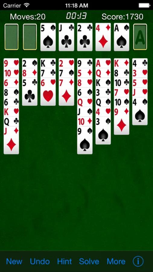 FreeCell has been bundled with all versions of Windows since 95 . The term "FreeCell" is given to the four empty spaces above the tableau that are used for the temporary storage of cards. The rules only allow you to move one card at a time but the FreeCells can be used to move sequences of packed cards between tableau columns. All the cards are dealt face up at the start of the game and this lets you analyze the outcome of moves before you make them.
