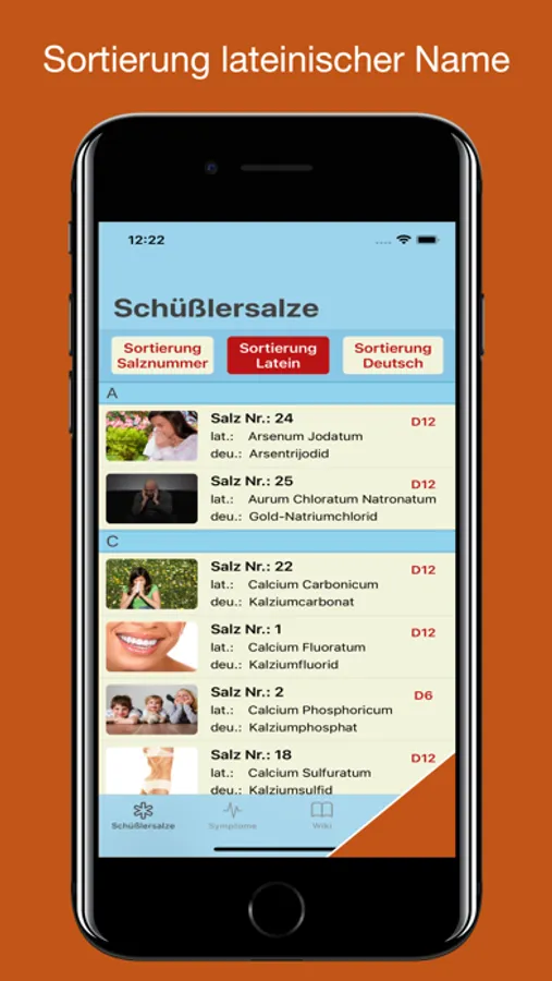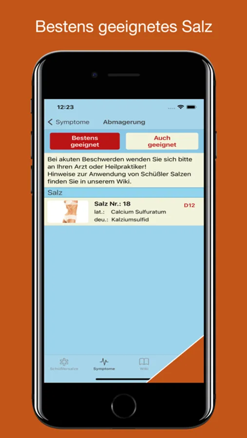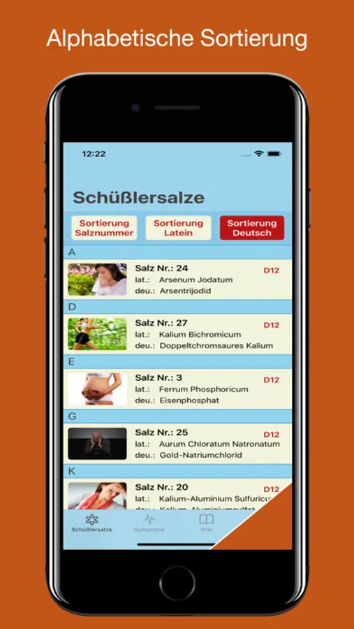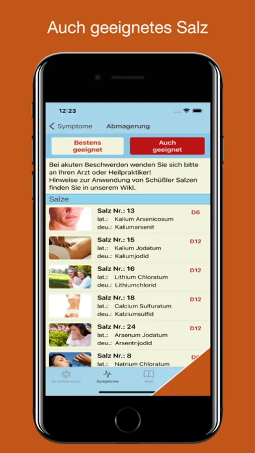 Indem Sie physische Anzeichen und Symptome mittels einer umfangreichen Datenbank zuordnen, hilft Ihnen diese App anhand des praktischen Mini-Lexikons, das richtige Salz oder eine Kombination aus Salzen für Ihre individuellen Beschwerden zu finden. Dabei erfahren Sie in Kürze das Wichtigste über die jeweilige Wirkungsweise und Anwendungsgebiete der Schüßler-Salze.