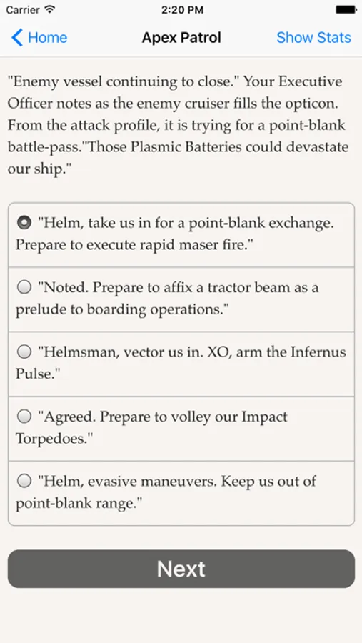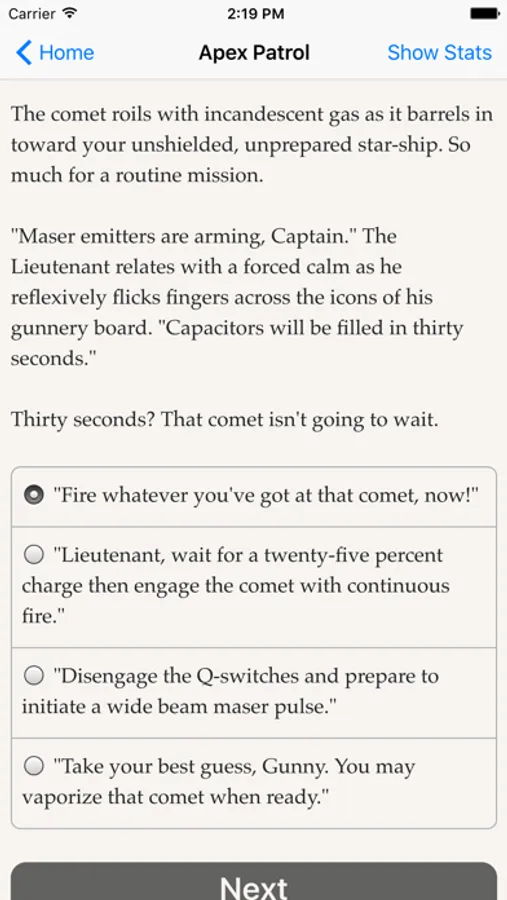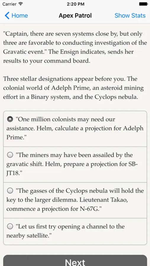 Command a star cruiser! Visit colonial worlds, rescue imperiled vessels, investigate stellar phenomena and prepare your ship to battle a ruthless foe. Only you and your crew can save Earth from utter destruction in this text-based adventure.