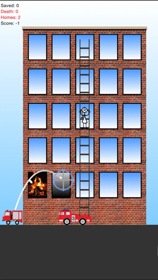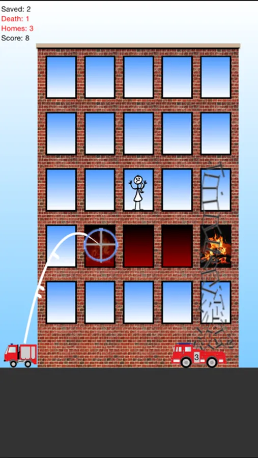 In the initial levels of the game, the fire only originates from one unit in the building and spreads more slowly. A fire will not escalate to the next floor until it has spread across the current floor. In the higher levels, multiple units will be on fire, and the fires will spread more rapidly and may spread upward or sideways. You'll also need to rescue more occupants.