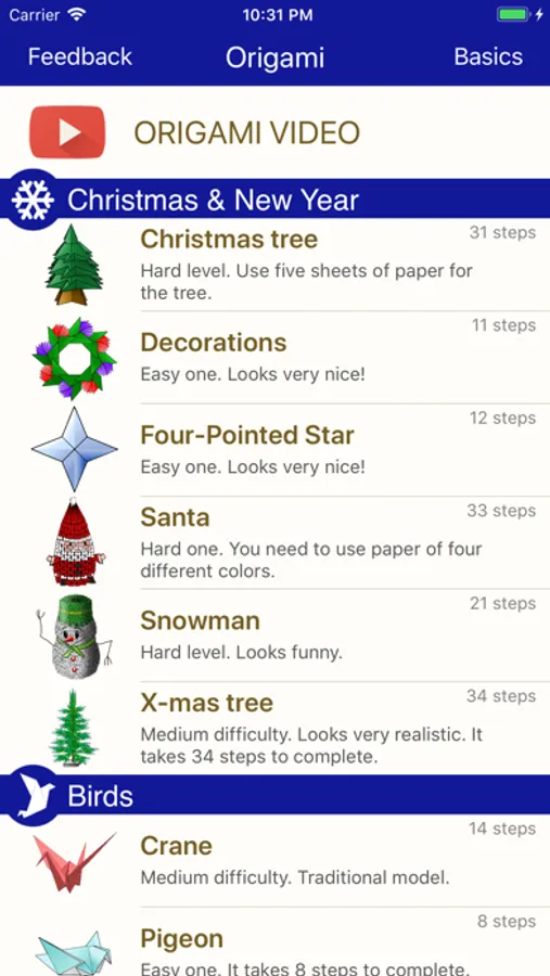 No need to look for video instructions elsewhere. We provide you with the top Origami videos, and it’s included in the app. Watch and learn with the Origami World!