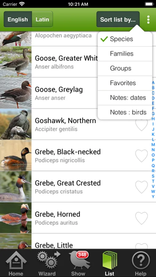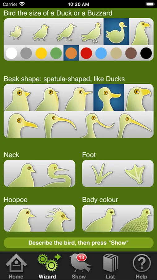 An assistant allows you to select criteria as the color, the shape of the beak or the size of the bird. So, you can reduce the search to a limited number of species, and even identify directly a bird, in certain cases.
