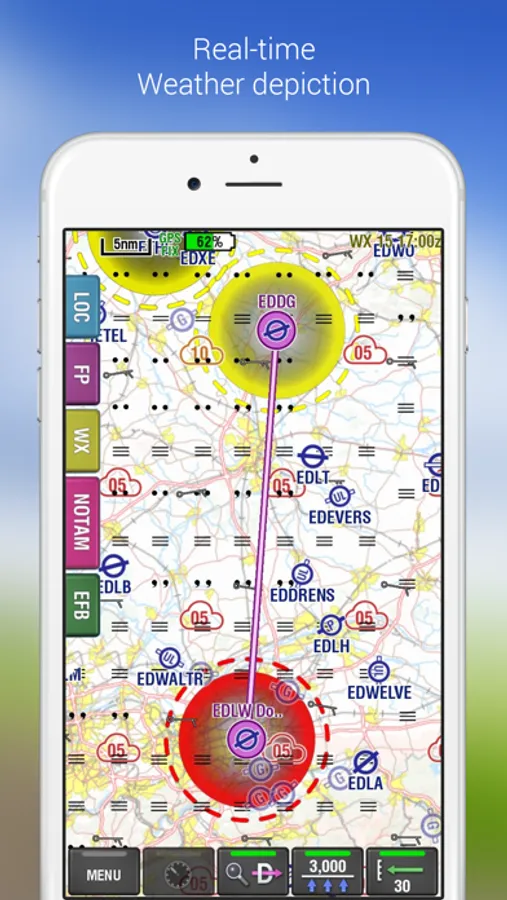 • Integrated meteo: the renowned Weather Information System provides graphical METAR & TAF depiction, and European Advanced WX cloud base forecast, W/V at different altitudes and SigWX like rain, fog, thunder.