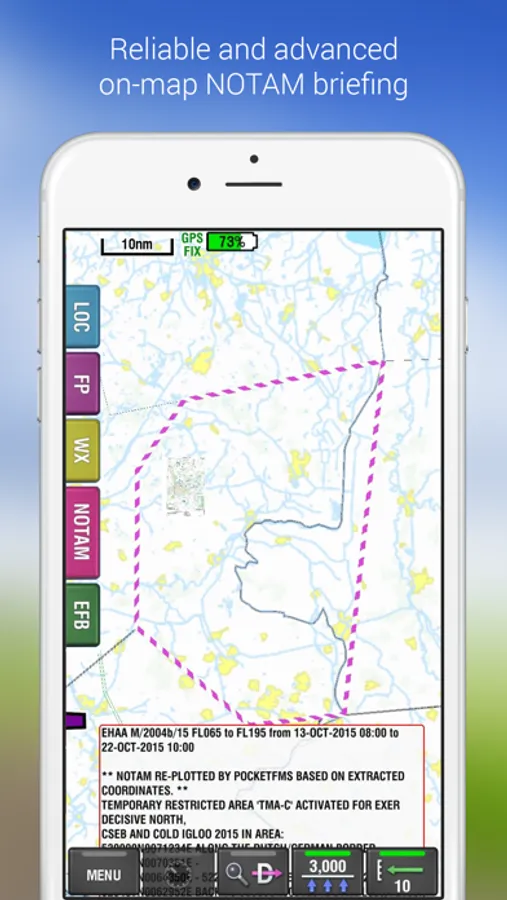 • Printing of flight plan briefings (NavLog, Weather, NOTAMS & Airspaces) using the unique PFMSEasyPrint system.