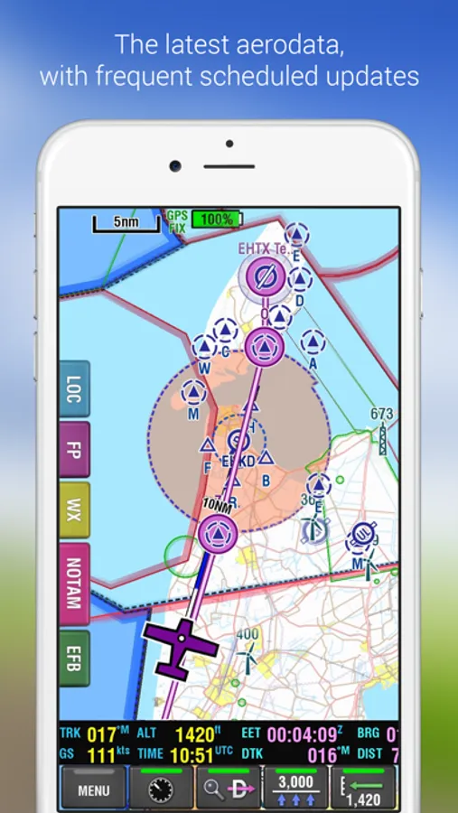 • Efficient flight planning; the easiest and fastest way to create multi-leg flight plans starts with just a tap & hold on a location on the map.