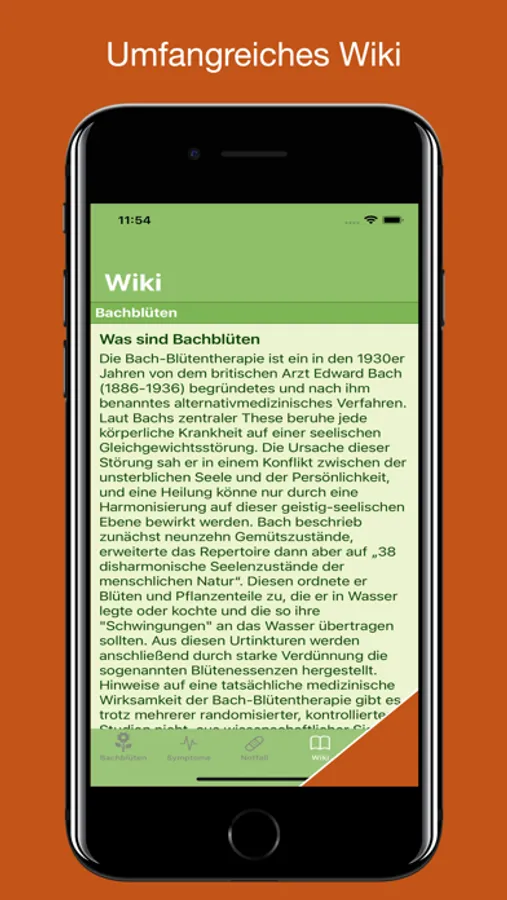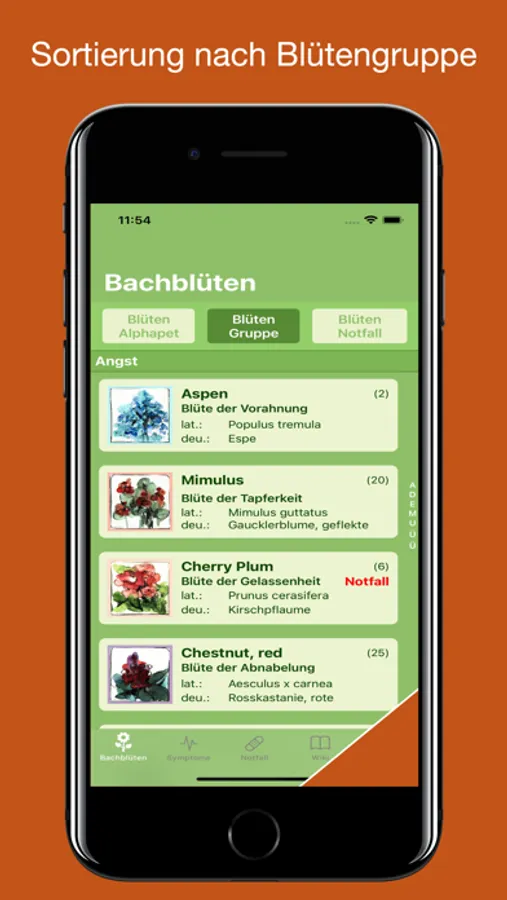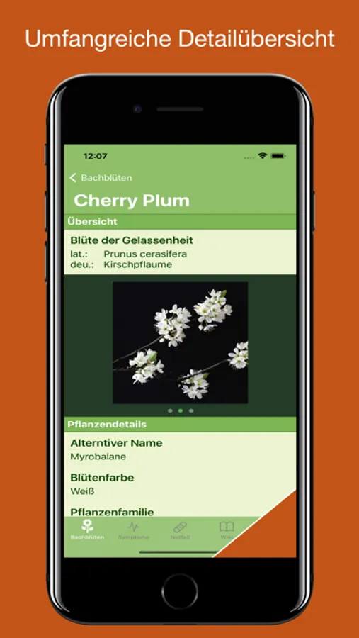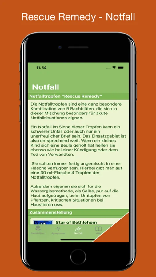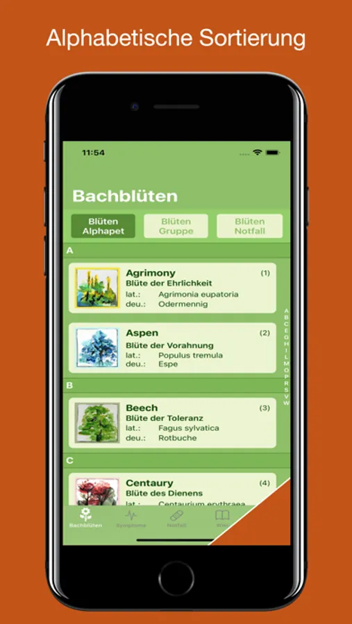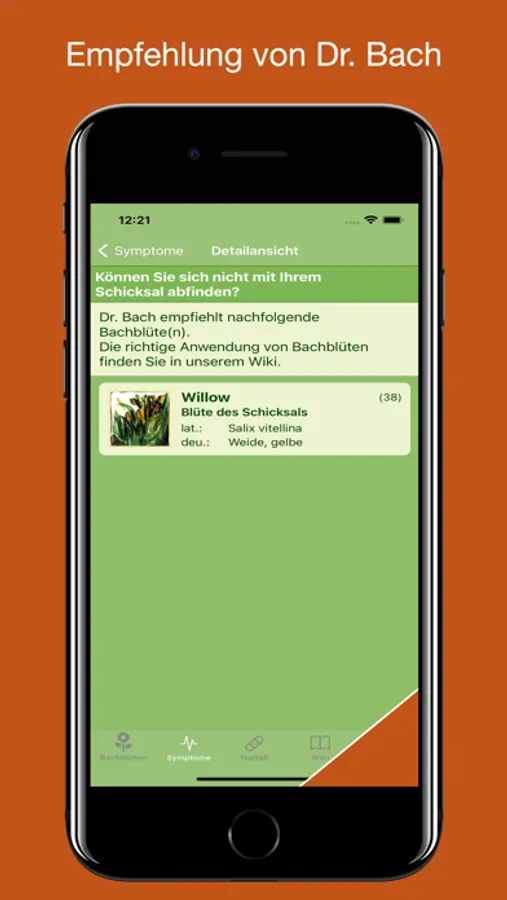 Um dem wertvollen Gedankengut Bachs gerecht zu werden, sind in dieser App die 38 Blüten übersichtlich aufgeführt und umfassend beschrieben. Hierüber erfahren Sie das Wichtigste im Hinblick auf Wirkungsweise und Anwendungsgebiete der Bachblüten. Darüber hinaus sind Sie mit Hilfe einer umfangreichen und benutzerfreundlichen Datenbank physischer Anzeichen und Symptome in der Lage, die richtige Bachblüte oder eine Kombination aus Bachblüten für Ihre individuellen Beschwerden zu finden.