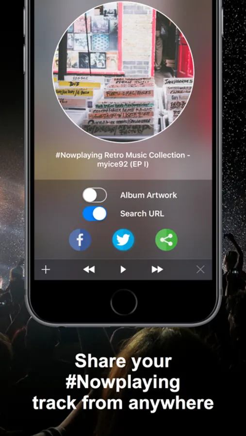 Let your followers know what song you are listening to by simply tweet the song name and its URL with #Nowplaying hashtag, or select your choice of song in-app.