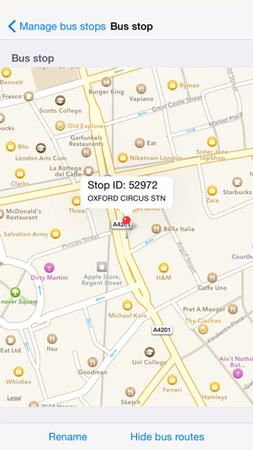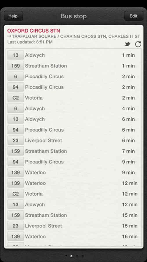 Next Bus Arrivals London has access to Transport for London live data containing real-time information about bus arrivals at all bus stops in London.