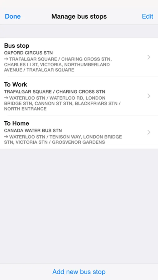 - Search by location: You can quickly add bus stops that are located near you at any time
