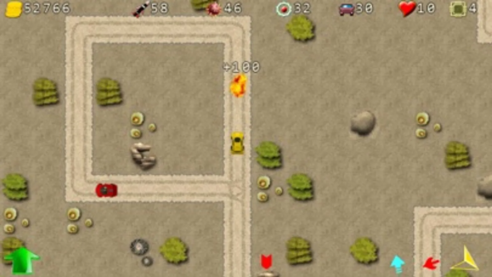 Your vehicle outperforms all the others: it is equipped with missiles and land-mines that you will be able to reload in each level. Destroy your enemies and retrieve all pieces to be the best.