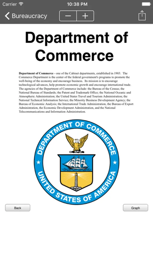 The powers of the President, the Congress and the Courts are explained in individual special sections. A detailed section is devoted to the Constituition, its writing and an explanation of each of its parts. The Bill of Rights is explained in a unique section, highlighting how that bill is applied today. Landmark Supreme Court decisions are also featured, including explanations of their importance.