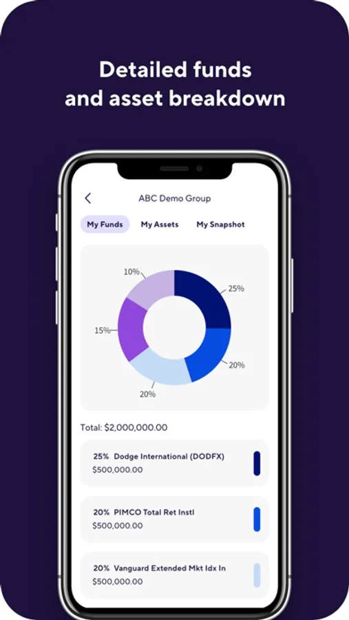 Get detailed portfolio data, view asset breakdowns, see how your investments break down and keep track of your goals.