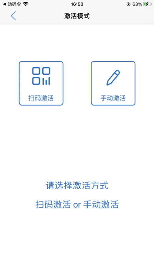 4、 动码令手机令牌的'序列号'、'激活码'由动联认证中心统一管理和分配,用户可以通过扫码激活和手动激活方式激活令牌。