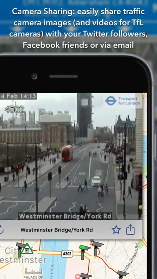 - Sharing: you can easily share traffic camera images (and videos for TfL cameras) with your Twitter followers, Facebook friends or via email etc.